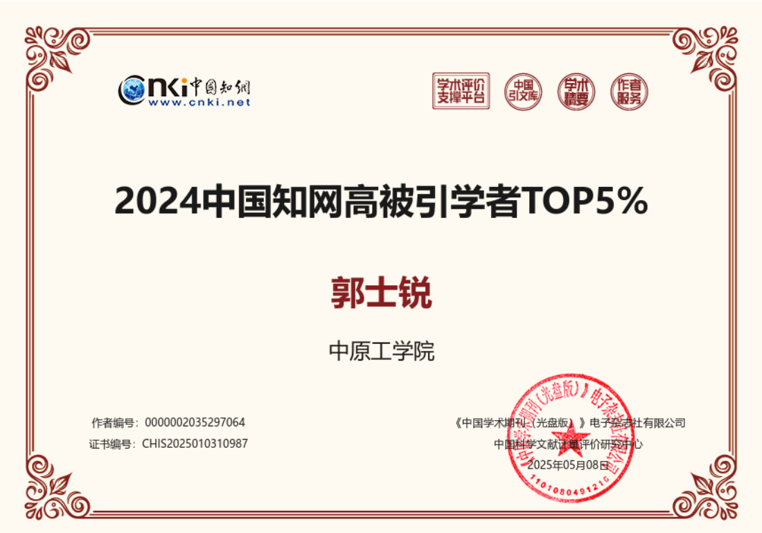 近日,中国知网专业评价机构——“中国知网中国科学文献计量评价研究中心”基于中国知网收录的国内外学术研究成果,首次对学者学术影响力进行客观评估,遴选并预发布了“2024 中国知网高被引学者”名单。yl23411永利集团官网机械设计系教师党支部书记、系主任郭士锐教授入选“2024中国知网高被引学者Top5%”。