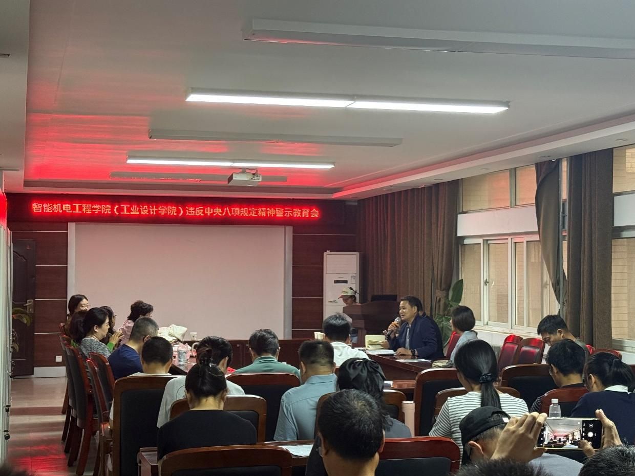 5月23日,学院在龙湖校区8号楼301会议室召开违反中央八项规定精神警示教育会,深入学习贯彻习近平总书记关于加强党的作风建设的重要论述和关于开展深入贯彻中央八项规定精神学习教育的重要讲话重要指示精神,学习传达学校违反中央八项规定精神警示教育会精神,剖析违反中央八项规定精神典型案例,以案说德、以案说纪、以案说法、以案说责,切实筑牢公司党员、干部、广大教职工拒腐防变思想防线。